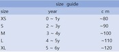 XS, S, M, L, XL