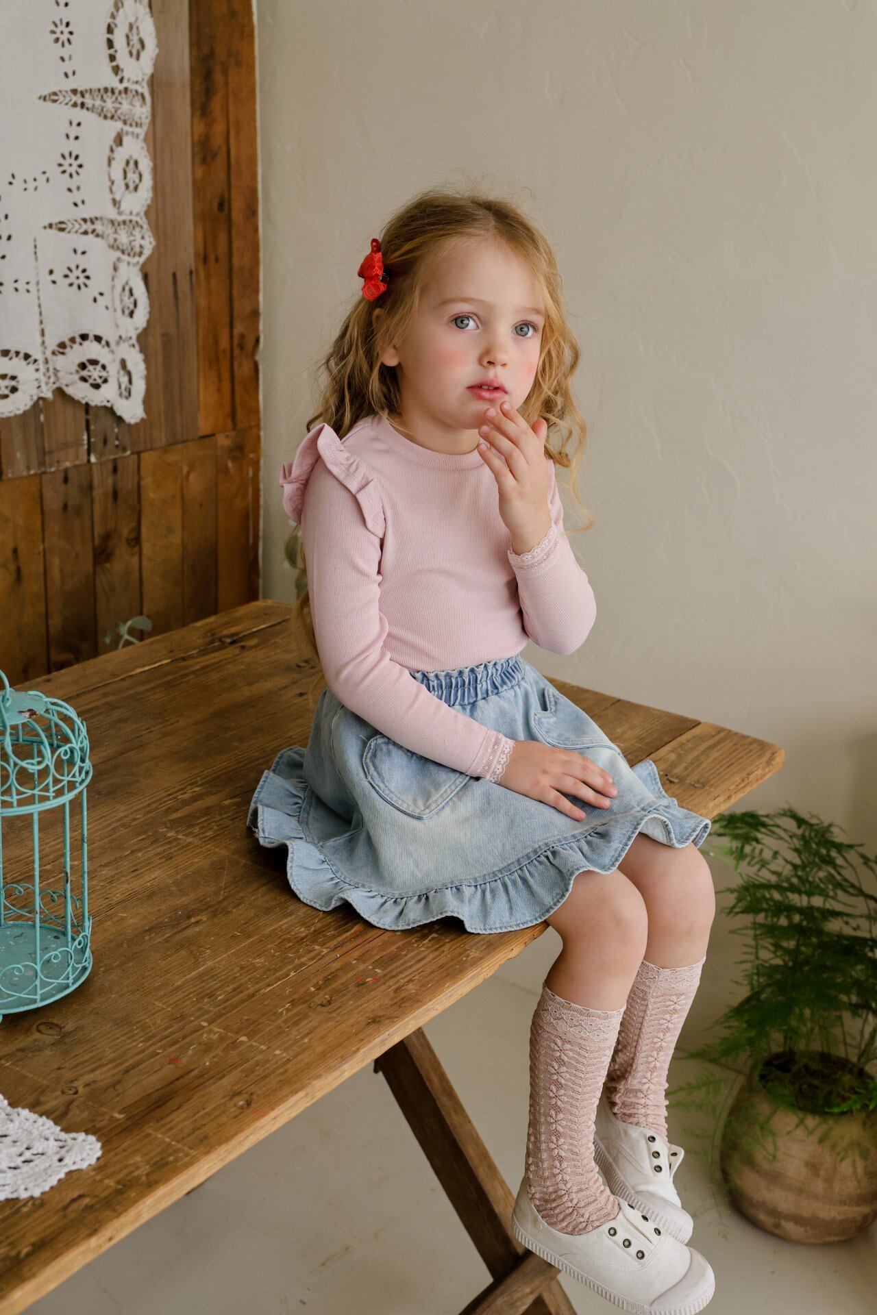 Main fabric) Pink TR 95% sp 5 / Red C 58% poly 38% sp 4 / Cream, Blue, Oatmeal cotton 95% sp 5